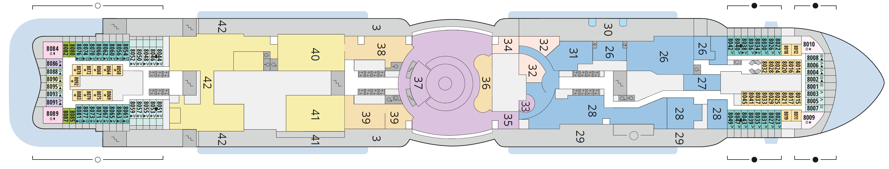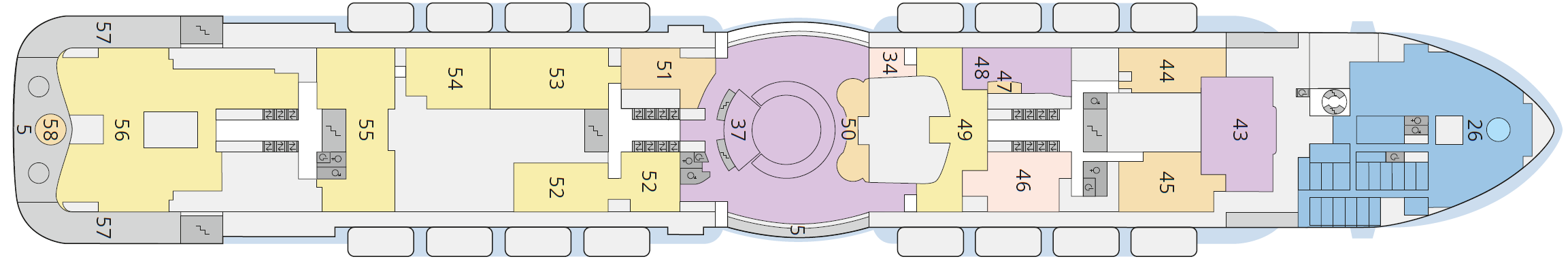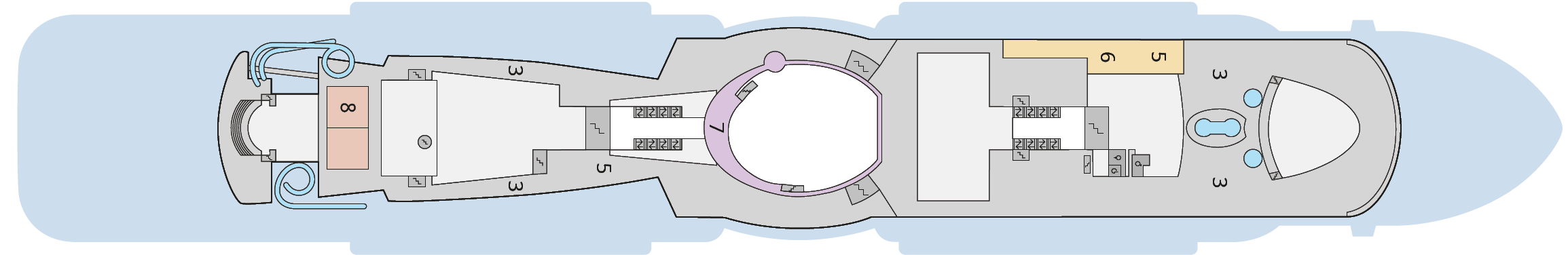 Ein besonderes Highlight ist das wunderschöne Ocean Deck am Heck, das sich über die gesamte Schiffsbreite erstreckt.