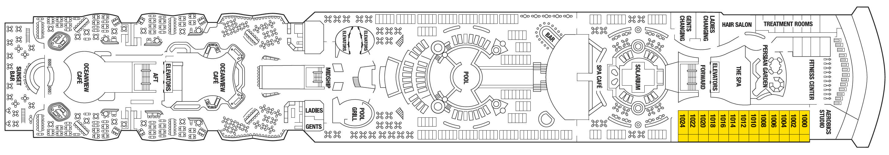Das Schiff, die Celebrity Millennium, gehört zusammen mit der Celebrity Summit, der Celebrity Constellation und der Celebrity Infinity zur Millennium-Klasse. Das Schiff lief im Jahr 2000 vom Stapel und ist damit ein echtes Millennium. Verbringen Sie den Tag am Pool. Entspannen Sie sich mit einem Buch, essen Sie einen Happen in der Sunset Bar oder sehen Sie sich auf der Dachterrasse bei einem eiskalten Getränk einen romantischen Film an.