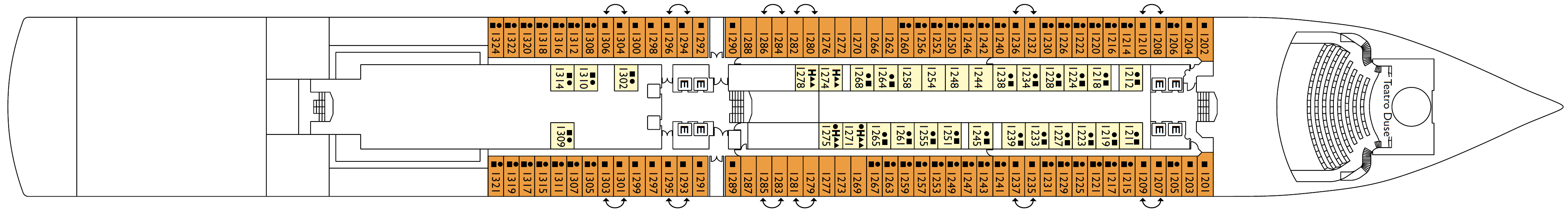 • 12 Passagierdecks / 5 Restaurants und 12 Bars