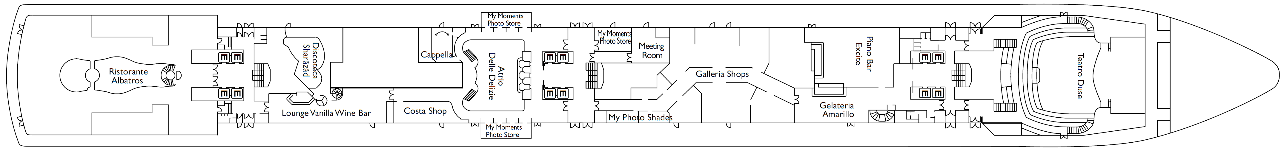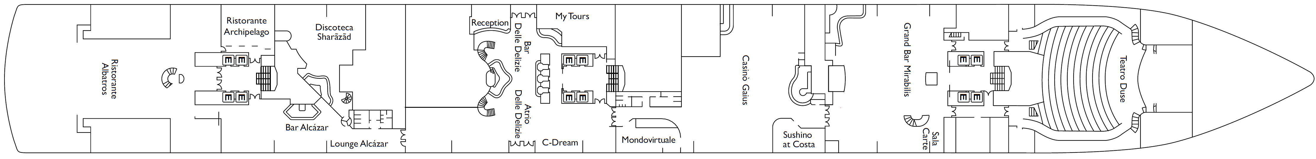 Die Costa Deliziosa ist ein italienisches Kreuzfahrtschiff der Costa Crociere. Die Costa Deliziosa ist ein wahres Schmuckstück der Costa-Flotte: Sie vereint Eleganz und Komfort und ist der Inbegriff des italienischen Stils. Glänzender Stahl und Glas lassen die Bedeutung der Decknamen zur Geltung kommen, die nach Zierblumen benannt wurden. Ein echtes künstlerisches Schmuckstück ist die “Kugel” von Arnaldo Pomodoro.