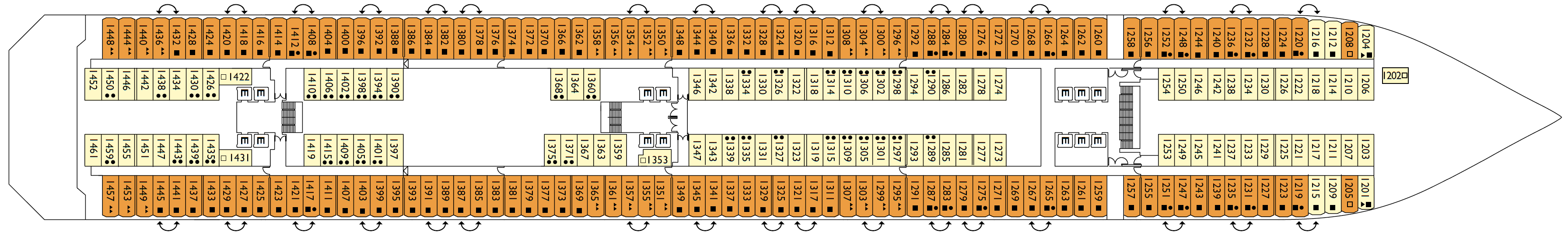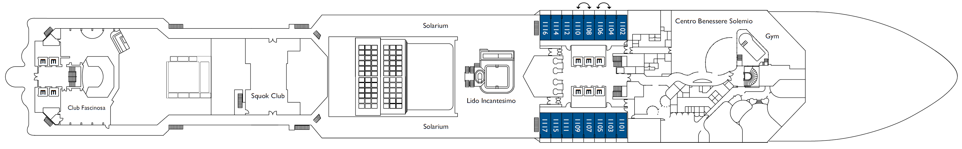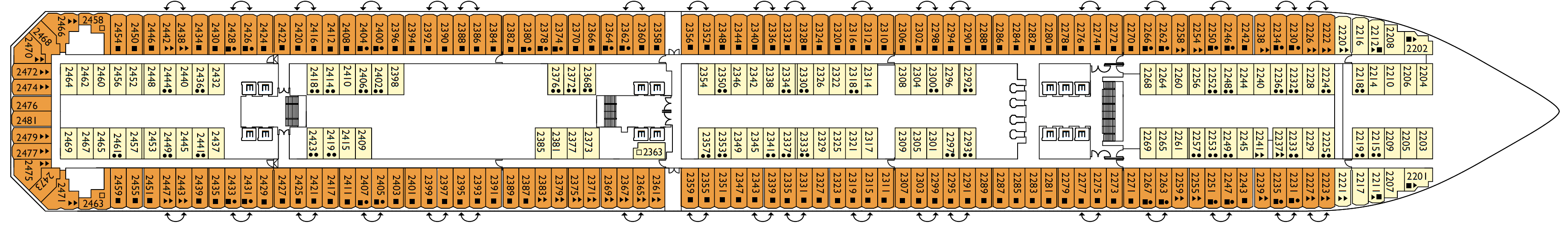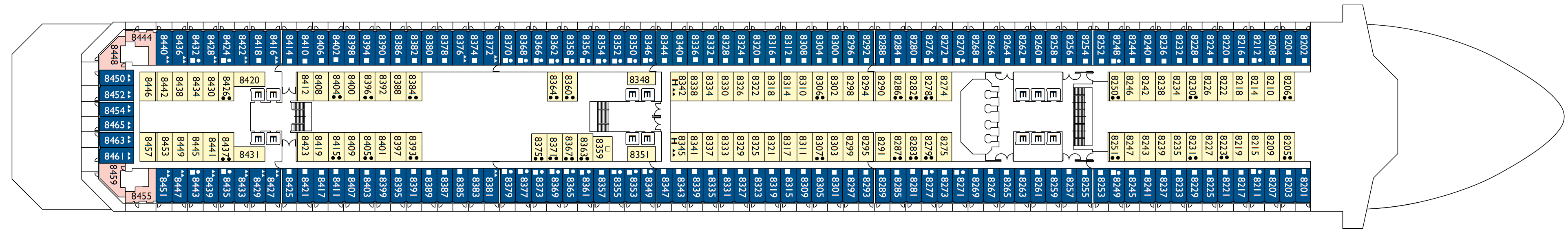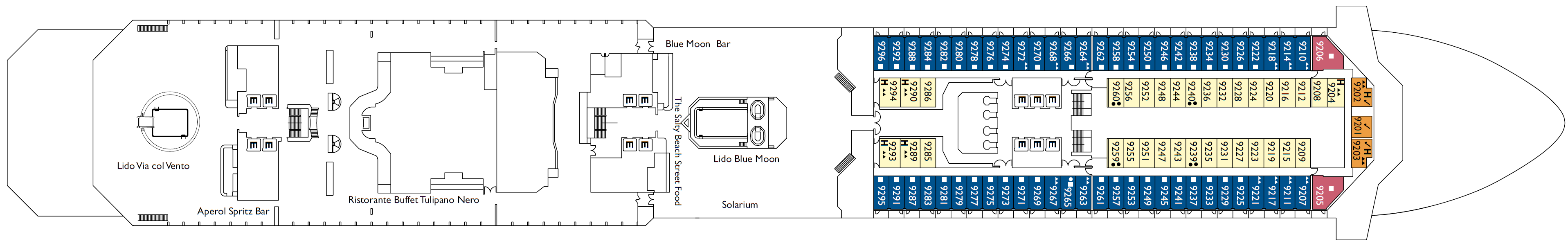 • Über 100 Kabinen mit direktem Zugang zum Spa