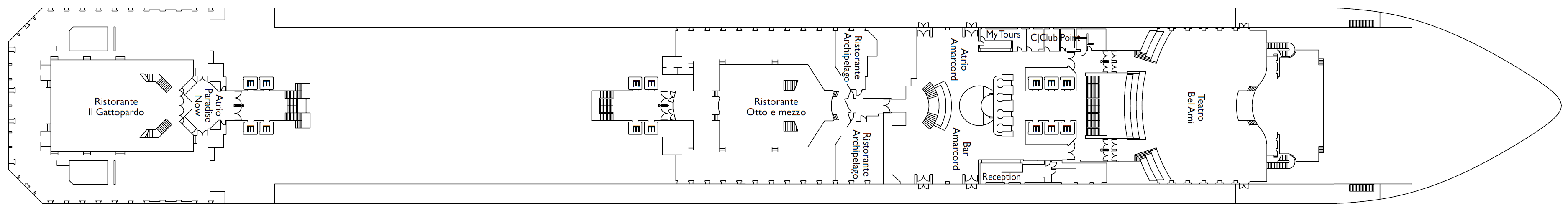 • 14 Passagierdecks / 6 Restaurants und 12 Bars