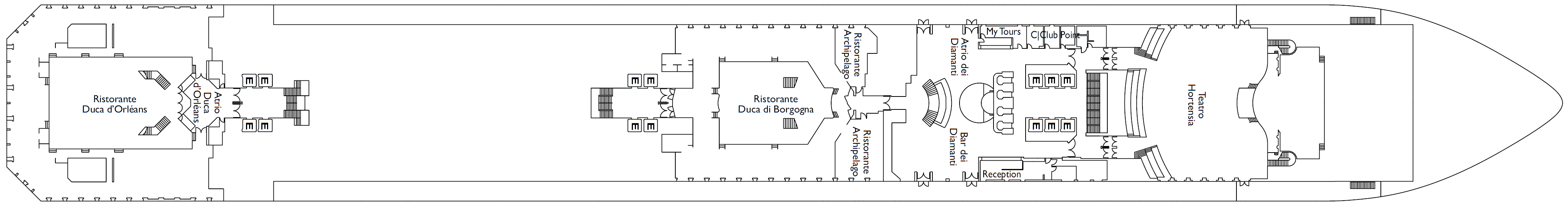 - 14 Passagierdecks / 6 Restaurants und 12 Bars