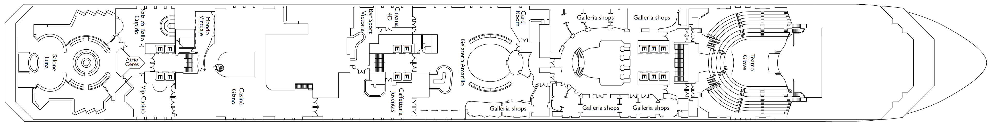 Ein Schiff, das ganz im Zeichen von Vergnügen, Wohlbefinden und Entspannung steht: Bars und Restaurants, weitläufige Panoramabrücken, Schwimmbäder mit selbsttätiger Kristallglasüberdachung, virtuelle Welten und Anlagen für sportliche Herausforderungen auf dem weiten Meer.