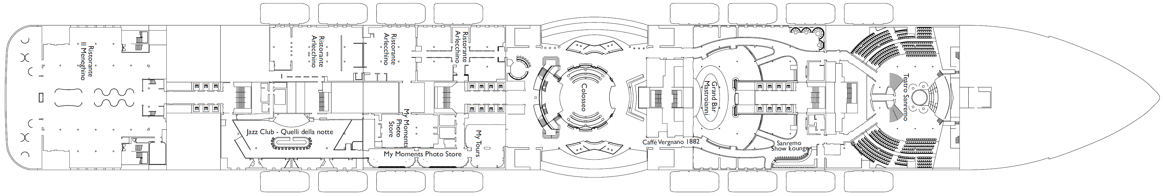 - 19 Passagierdecks / 11 Restaurants und 19 Bars