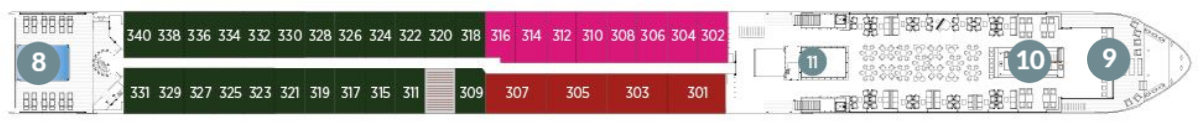 De schepen beschikken over meer dan negentig royale suites en passagiershutten, waarvan vier de Emerald Owner’s One-Bedroom Suites, die beschikken over een privébalkon buiten, een aparte woonkamer en slaapkamer, een inloopkast, een gratis minibar en een uitnodiging om elegant te dineren aan de Captain’s Table.