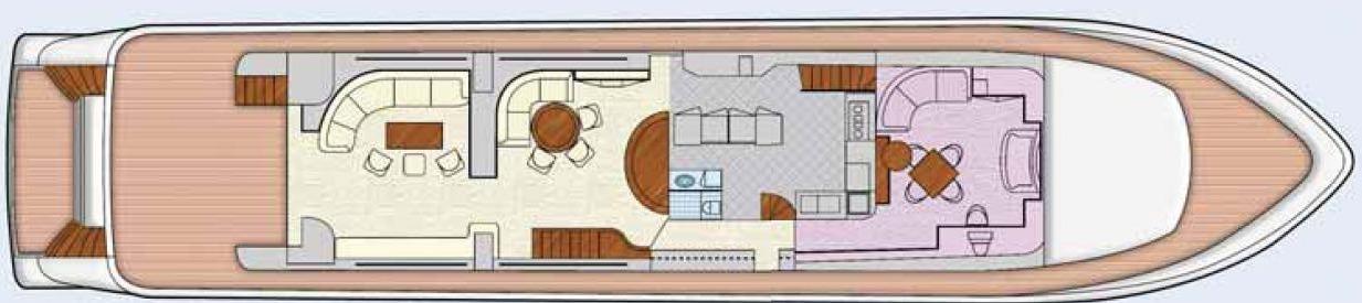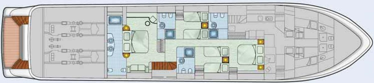 Mal cruisen Sie mit voller Geschwindigkeit schneidig durch die See, ein andermal liegen Sie in einer abgeschiedenen Bucht müßiggängerisch vor Anker und lassen sich einfach vom hervorragenden Service der Obsession-Crew verwöhnen. Sowohl auf dem Sonnendeck oben als auch auf dem hinteren Hauptdeck können Sie im Freien speisen und das Leben so genießen, wie es sich auf der Obsession vor allem anfühlt: unbeschwert und leicht!