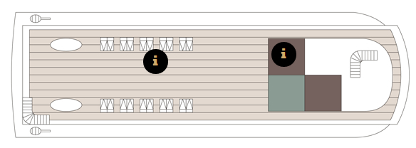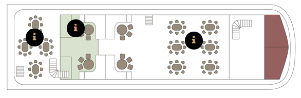 Nicht nur ein oder zwei Mal werden Sie herrliche Meerespanoramen zu sehen bekommen, während Sie ohne Eile über das 240 Quadratmeter große, offene Deck spazieren. Setzen Sie sich zusammen mit Freunden entspannt in die angenehm gestaltete Lounge, stöbern Sie durch die gut ausgestattete Bücherei oder dinieren Sie mit Meerblick im großen, gemütlichen Restaurant-Bereich.