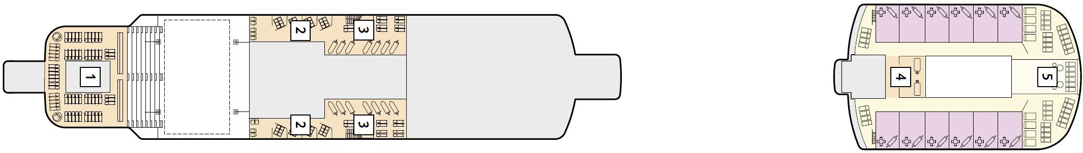 Äußerlich identisch zur Mein Schiff 3und Mein Schiff 4 hält das 5. Wohlfühlschiff im Innenleben einige Neuerungen auf jedem Deck bereit. Zusätzlich gibt es einen Landstromanschluss, um die Umwelt möglichst wenig zu belasten.