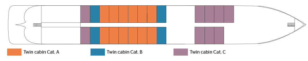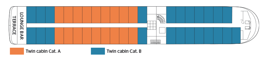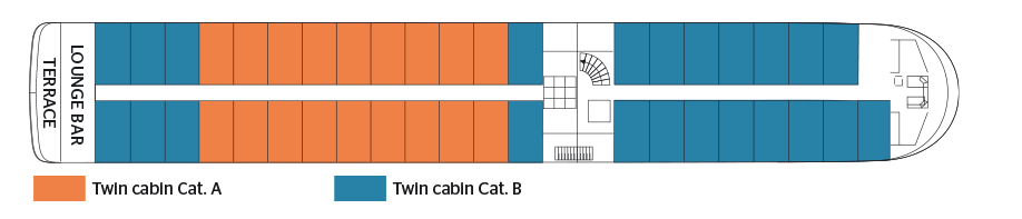 The MS Gérard Schmitter sails on the Rhine River and its tributaries.Baptized in homage to the founder of the company CroisiEurope, sails on the Rhine and the Danube, at the meeting of the many marvels offered by these two romantic rivers par excellence. Built in 2012, the MS Gérard Schmitter is a 5-anchor boat. human dimension, measuring 110 meters long and 11.40 meters wide. It can accommodate 174 passengers in 87 cabins arranged on three decks. Each of them, with an area of 13.50 m2, has all the amenities and offers the best living conditions. The chocolate tones, associated with; touches of pink and lilac make it particularly warm. The decoration, created by Maria Rosa Rosello, pays homage to the founder of the company CroisiEurope, for a delicate and flowery ensemble, as loved by the family. painting it Gérard Schmitter. Located at the level of the intermediate deck, the restaurant, where are served all meals during the trip, offers delicate cuisine in a refined setting, where large bay windows allow you to take full advantage of the panorama. On this same deck is also the lounge bar with dance floor, while on the sun deck, an ideal place to relax and admire the landscapes, passengers can have comfortable deckchairs, as well as a large shaded area.