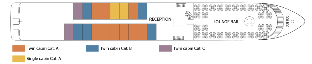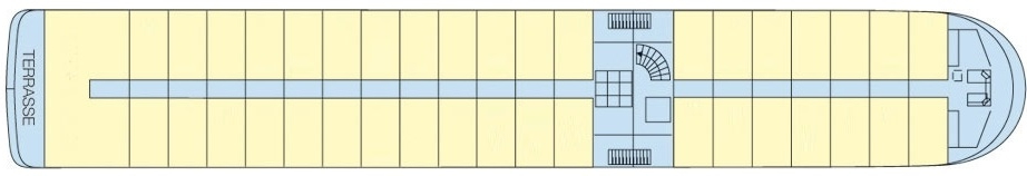 Baptized in honor of the famous Portuguese navigator who discovered the route to India, the MS Vasco de Gama sails on the Douro. It allows you to admire unique landscapes, sculpted by nature and shaped by men, all along an enchanted valley where was born in particular the famous Port wine. Completely renovated. in 2014, the MS Vasco de Gama is a 4-anchor boat. human dimension, measuring 75 meters long and 11.40 meters wide. It can accommodate 138 passengers, in 71 cabins arranged on three decks. Each of the cabins, ranging in size from 11 to 12.50 m2, has all the amenities and offers the best living conditions. The majority cabins are located on the upper deck and have large windows. Those on the middle and main decks have large windows. The decoration is neat and its atmosphere, both elegant and friendly, is in perfect harmony with its environment. The yellow tones are reminiscent of the sun that bathes the area and give the boat a pleasant feeling of light. Located at main deck level, the restaurant, where are served all meals during the trip, offers delicate cuisine in a refined setting, where; large windows allow you to fully enjoy the panorama. On the middle deck is the lounge bar with dance floor. On the sun deck, an ideal place to relax and admire the scenery, passengers can enjoy a swimming pool and comfortable deckchairs, as well as a large shaded area.