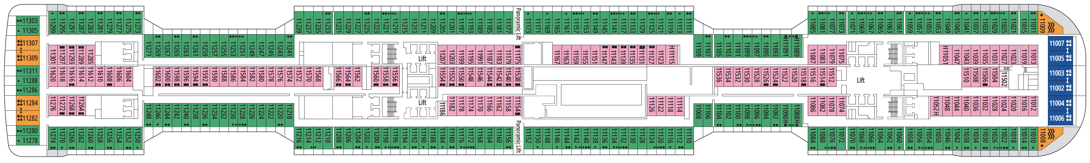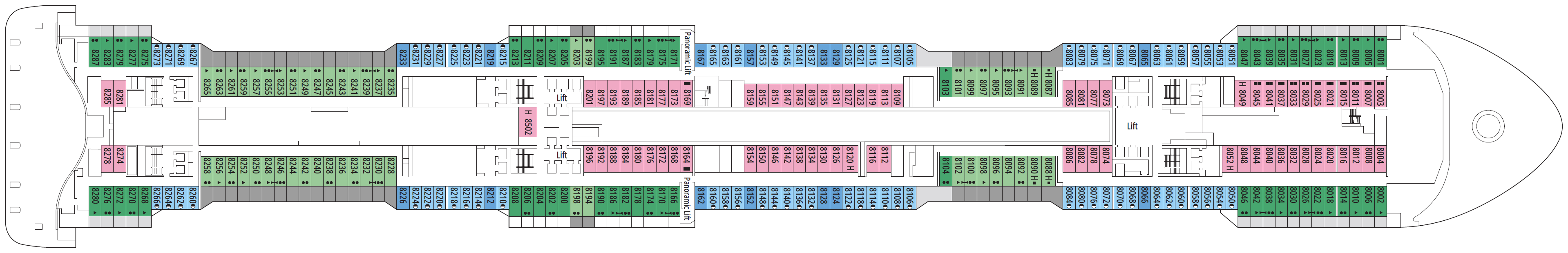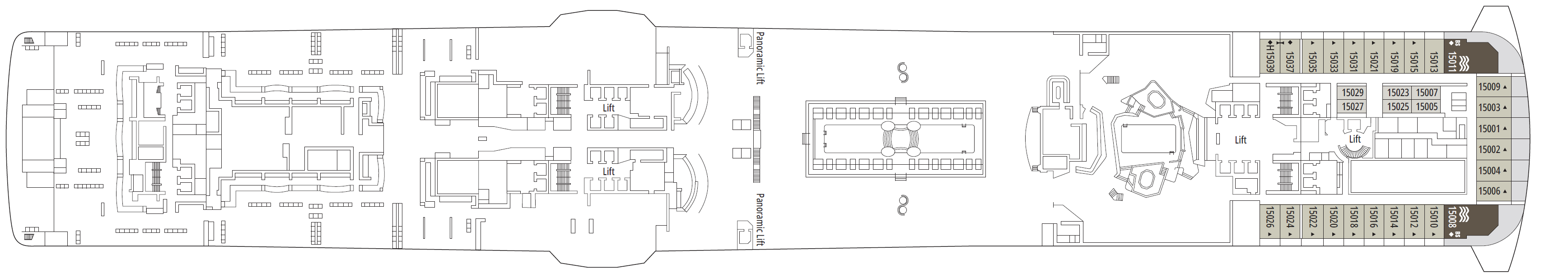 Die Innenpromenade Galleria Euribia gehört zu den Highlights an Bord. Die Promenade wird von einem LED-Himmel geziert, welcher mit wechselnden Animationen von Sonnenaufgängen, -untergängen und vom Sternenhimmel die Blicke auf sich zieht.