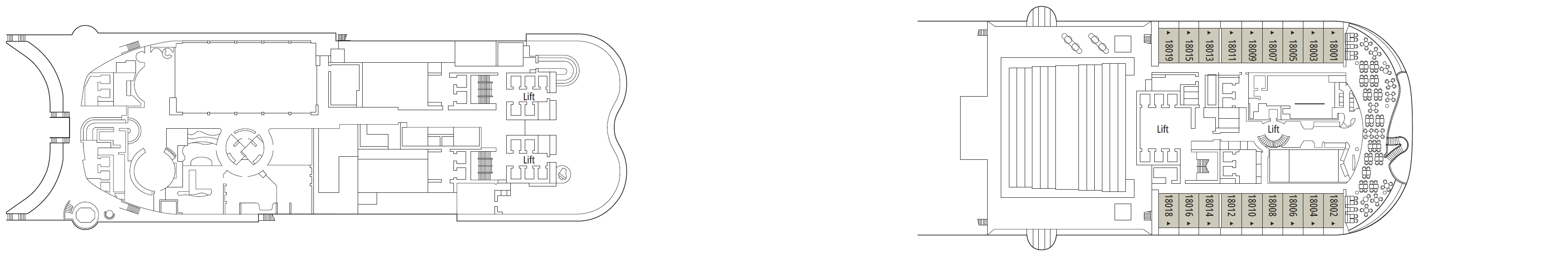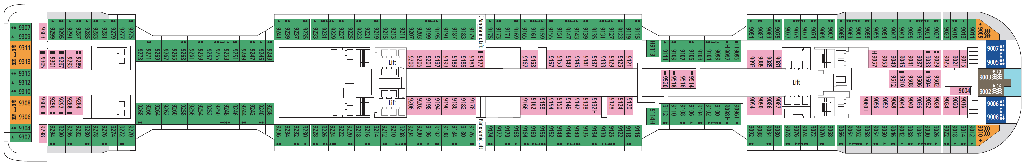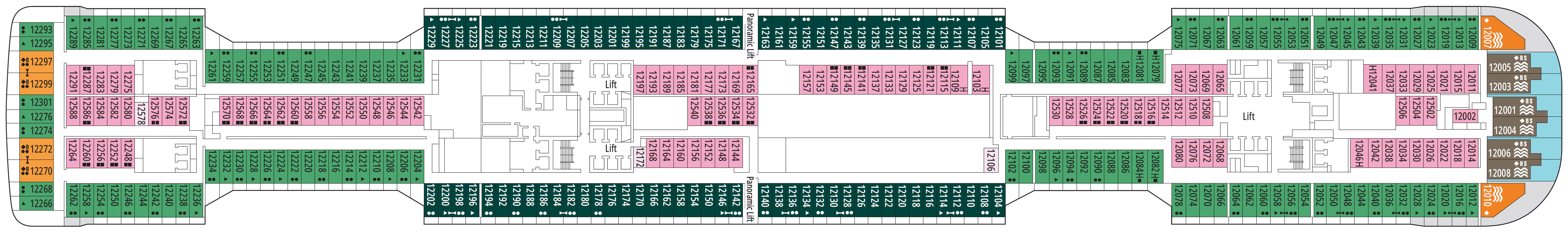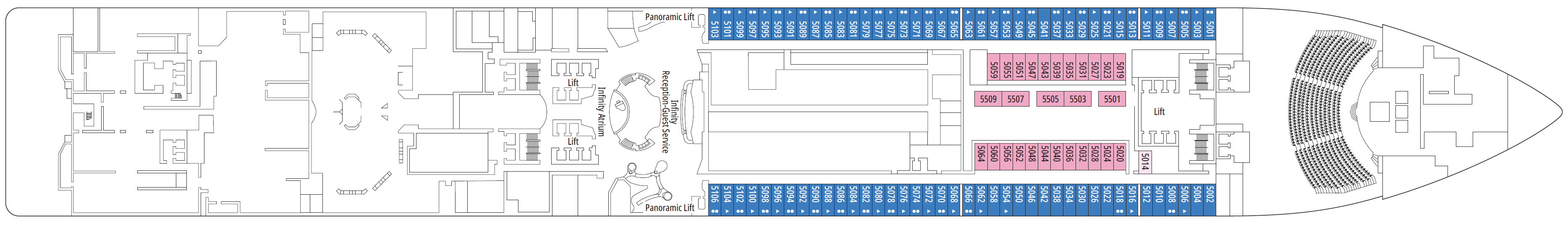 Die Innenpromenade Galleria Euribia gehört zu den Highlights an Bord. Die Promenade wird von einem LED-Himmel geziert, welcher mit wechselnden Animationen von Sonnenaufgängen, -untergängen und vom Sternenhimmel die Blicke auf sich zieht.