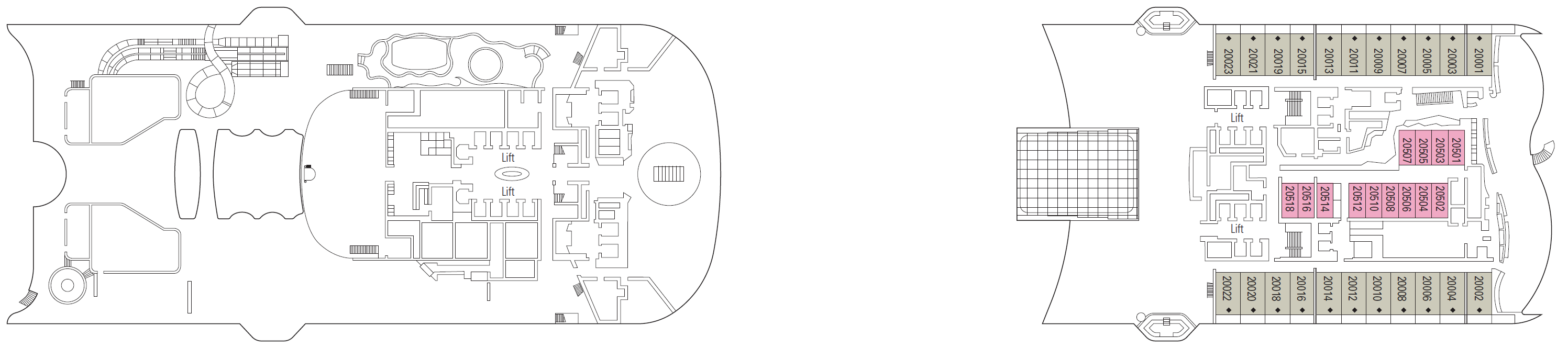 Auf dem Familien-Sonnendeck können Eltern und Kinder die Tage auf See genießen. Die sieben Pools und dreizehn Whirlpools bieten ausreichend Platz zur Entspannung an Bord. Im multifunktionalen Unterhaltungsbereich „Luna Park Arena“ werden diverse weitere Aktivitäten für Kinder angeboten.