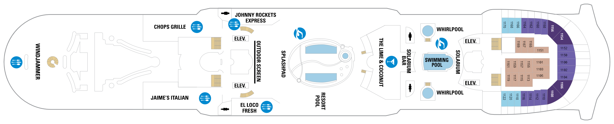 - 14 Decks / 6 Restaurants