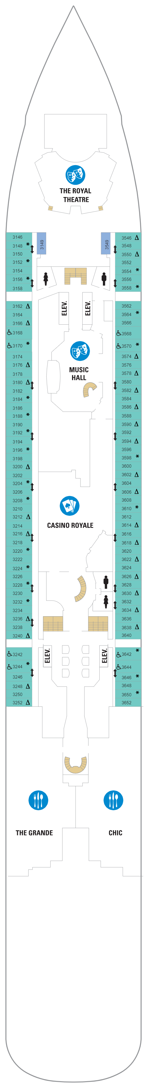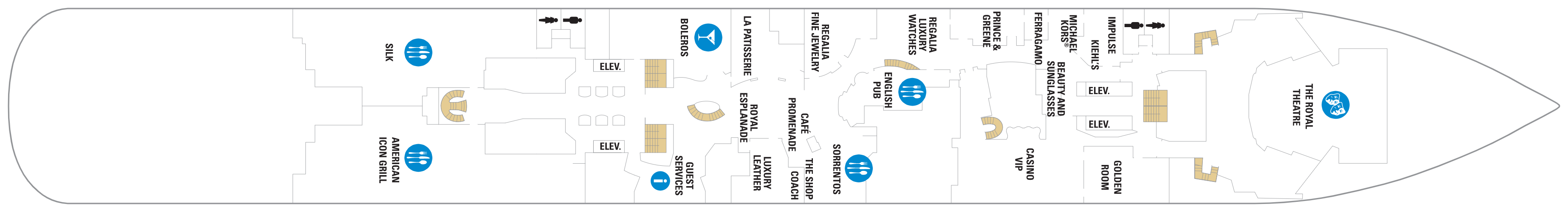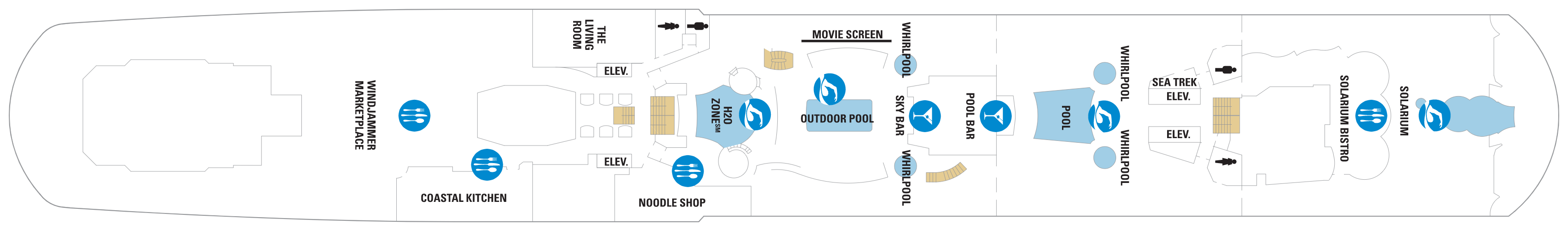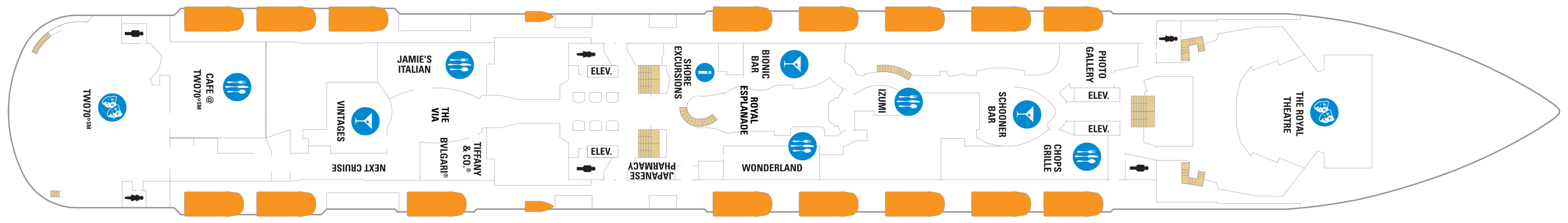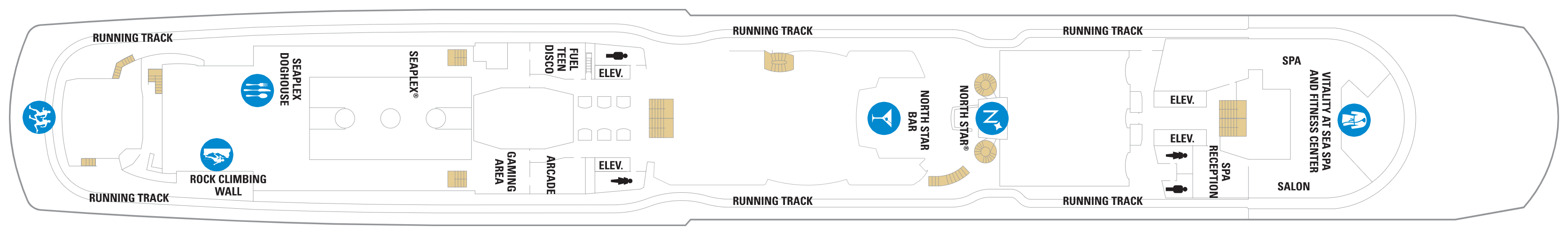 Ein Fallschirmsprung-Simulator und der Sea Plex-Bereich sorgen dafür, dass Passagiere sich so lebendig fühlen können wie nie zuvor. Es gibt eine große Auswahl an Aktivitäten, die besonders für sportlich begeisterte Reisegäste ein Highlight darstellen. Im Bereich der Speisen und Getränken gibt es ebenfalls eine umfangreiche Auswahl.