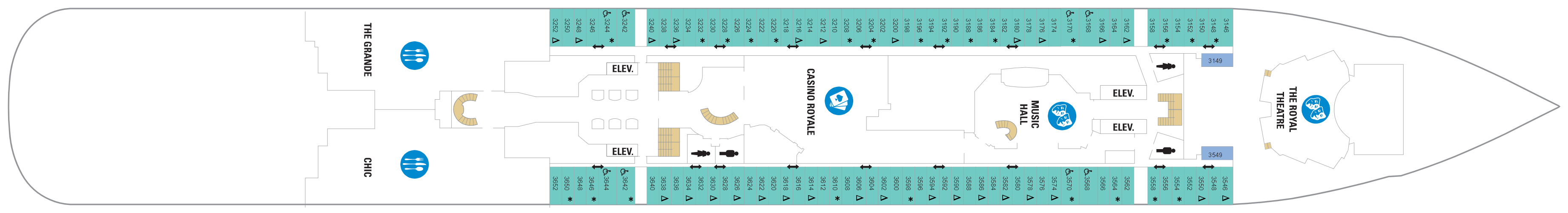 - Innen- und Studiokabinen mit virtueller Aussicht