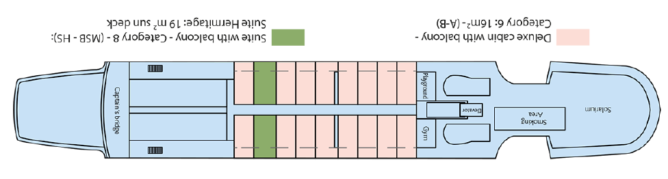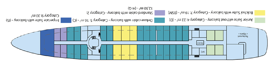 Facilities include 1 restaurant, 3 bars including 1 outside, elevator, conference room, musical lounge, gift shop, laundry service, medical room, several decks to stroll around on including a sun deck with chaise lounges.