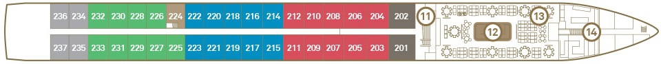 Met vier weelderige dekken met een selectie van privésuites en openbare lounge- en eetgelegenheden, is elk aspect van Scenic Crystal, Jade en Jewel zorgvuldig beschouwd als gemakkelijk bevaarbaar en heerlijk luxueus.