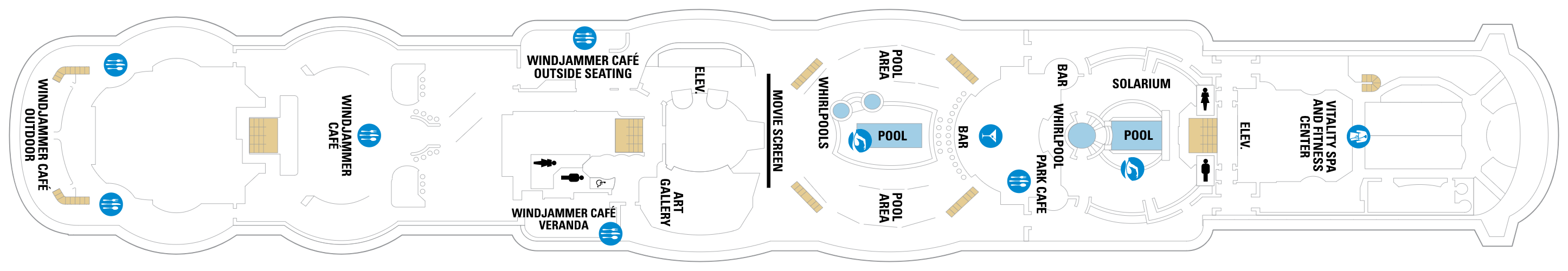 Das Centrum mit Glaskuppeldach und zahlreichen Möglichkeiten zum Bummeln und Shoppen lädt Besucher ebenso zum Verweilen ein wie die Kunstgalerie oder die Video Arcade. Im Spa können sich die Gäste entspannen und eine Vielzahl an Anwendungen und Massagen genießen.