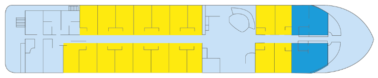 He sails proudly on the Nile, a symbolic and sacred river, witness to forty centuries of history and cradle of one of its most brilliant civilizations. A superb 5-anchor boat, the RV Steigenberger Royale is the ideal setting for a dream voyage. The RV Steigenberger Royale is a magnificent 5-anchor boat. human dimension, measuring 72 meters long and 13.80 meters wide. It can accommodate 98 passengers, in 49 cabins arranged on three decks. Each of the cabins, with an area of 20 m2 (to which are added two suites of 40 M2 each), has all the amenities and offers the best living conditions. The decoration is neat and its atmosphere, both elegant and friendly, is in perfect harmony with its environment. The restaurant, which offers delicate cuisine in a refined setting, is located at the Nile Bridge. Large bay windows allow you to admire the splendid landscapes crossed. On the sun deck level are the lounge-bar, another outdoor bar, a library/games room, a sports area and a massage area, while the upper terrace, an ideal place to relax and admire the landscapes, has a solarium equipped with comfortable deckchairs, as well as a swimming pool with jacuzzi.
