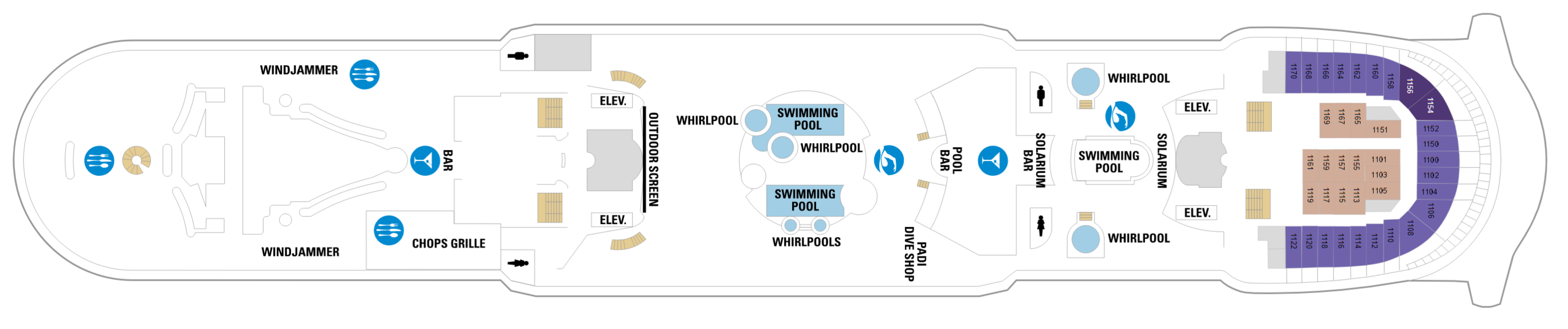 - 14 Decks / 5 Restaurants