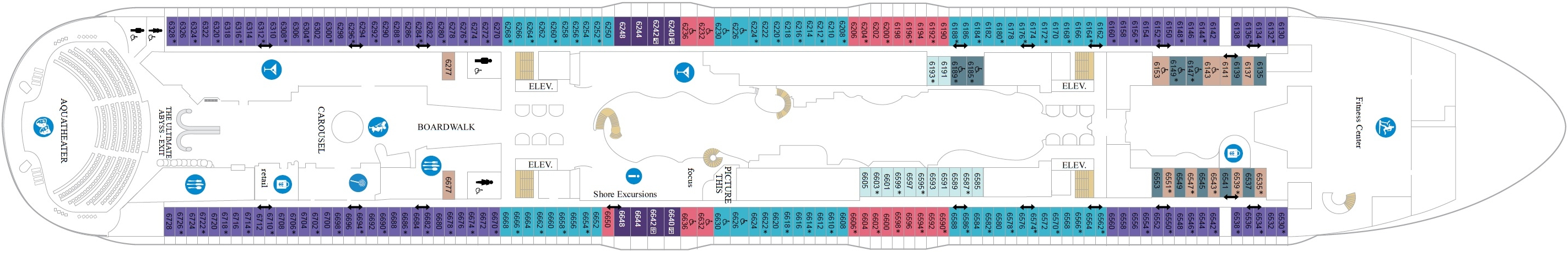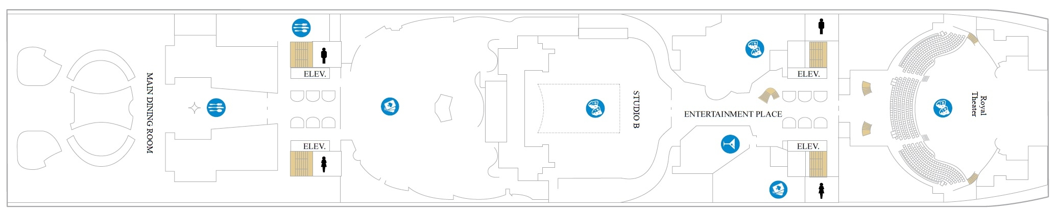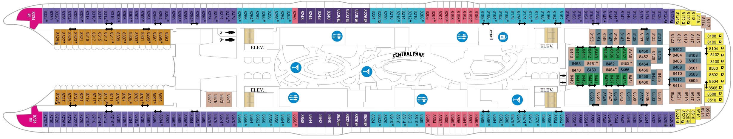 Opulent gestaltete Bereiche wie der Central Park, der familienfreundliche Boardwalk sowie Grünlandschaften laden dazu ein, die Zeit an Board in vollen Zügen zu genießen. Zahlreiche Restaurants führen mit hochwertigen Mahlzeiten durch die besten Küchen der Welt.